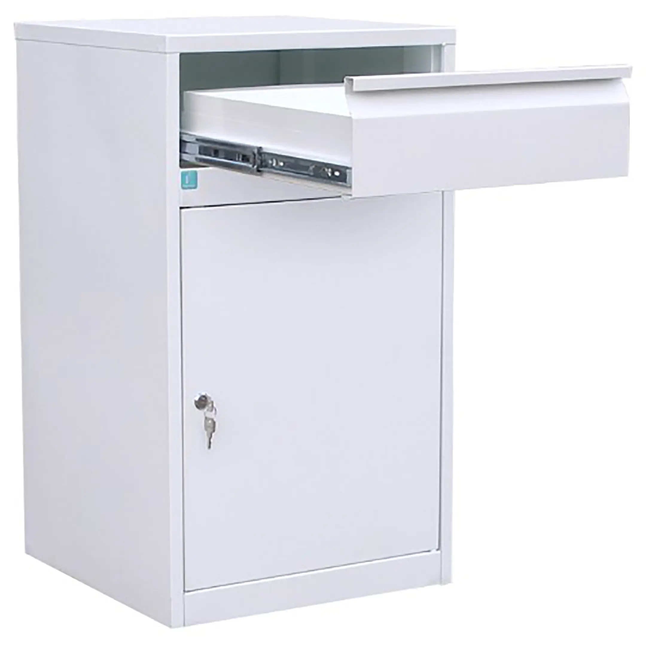 • запираемая дверка, выдвижной ящик;