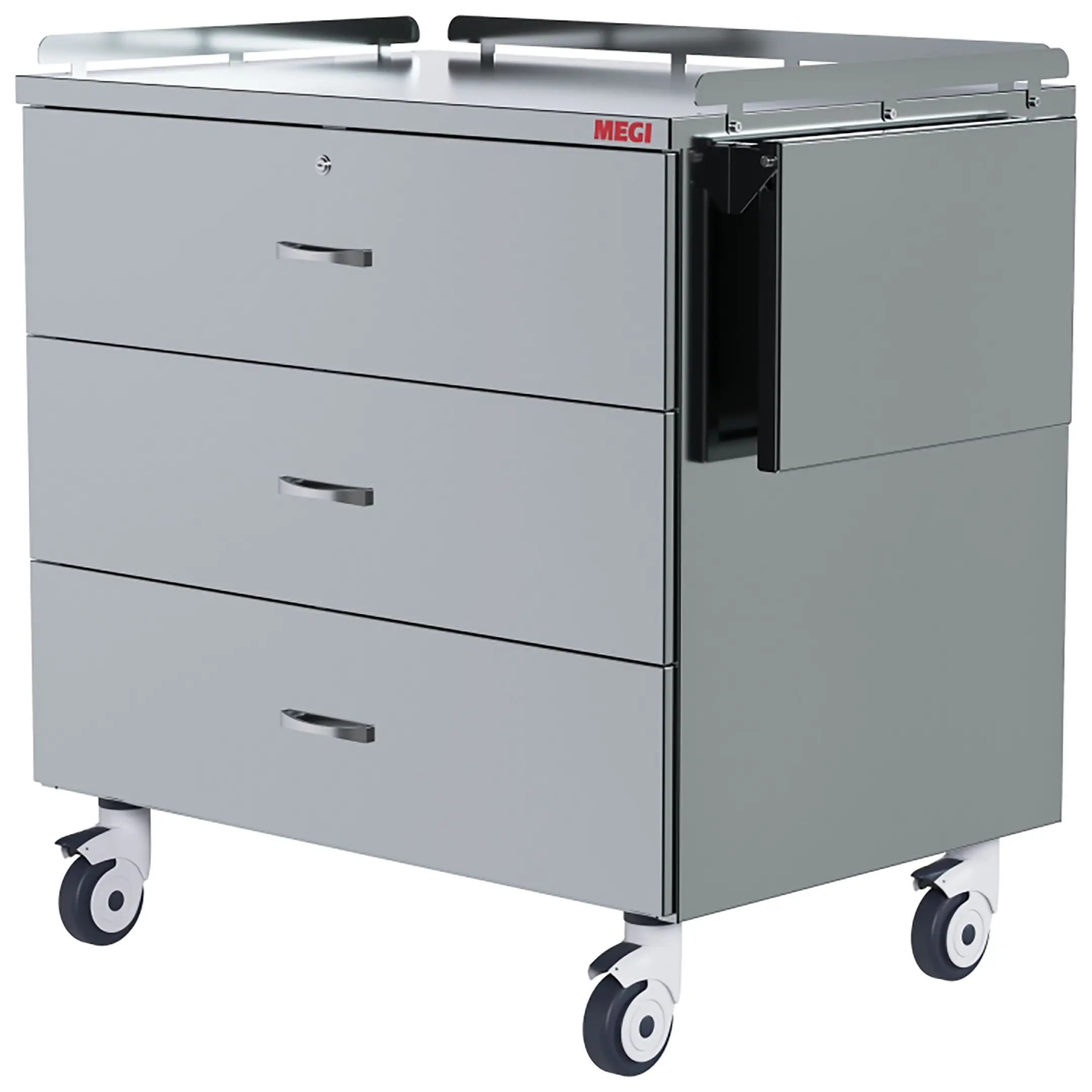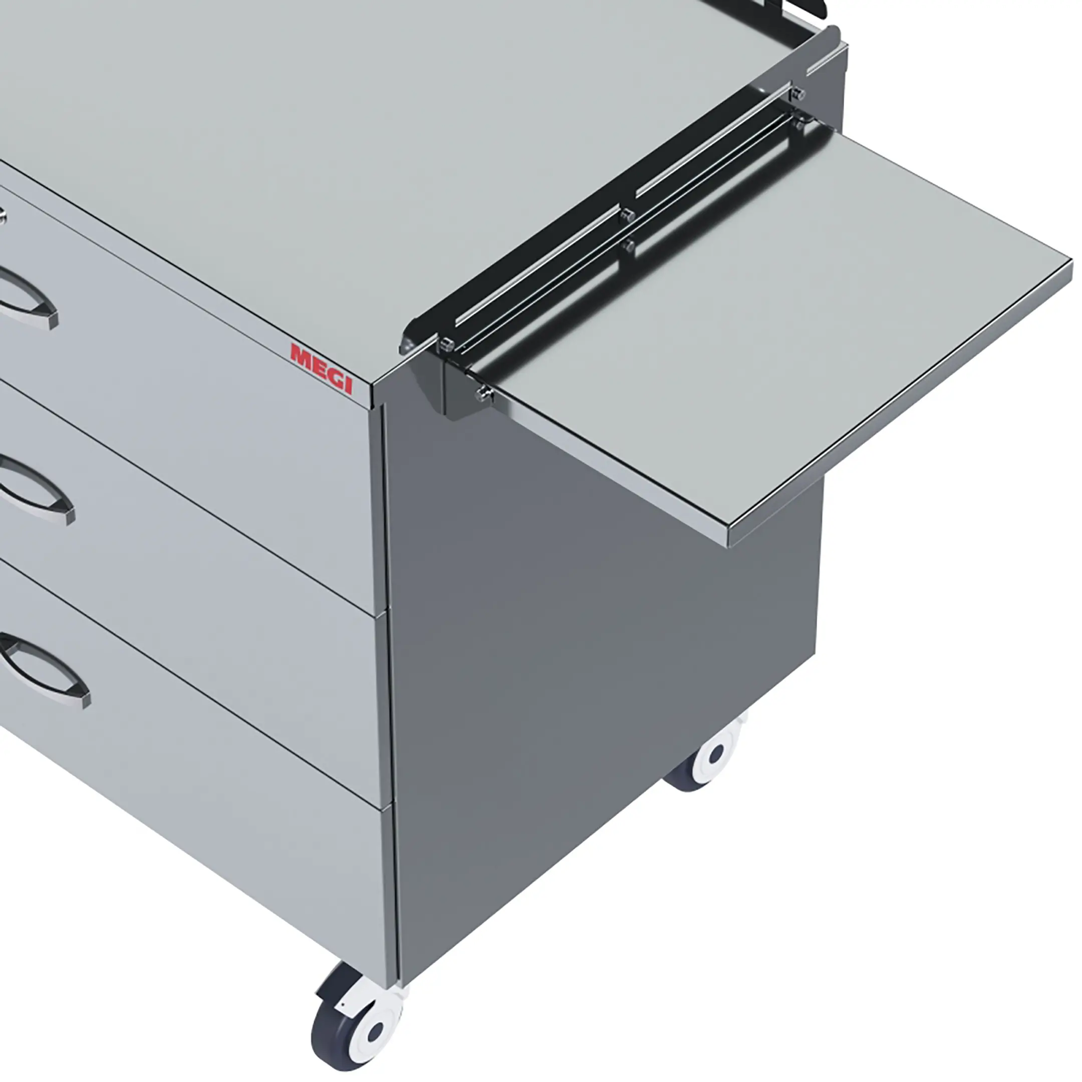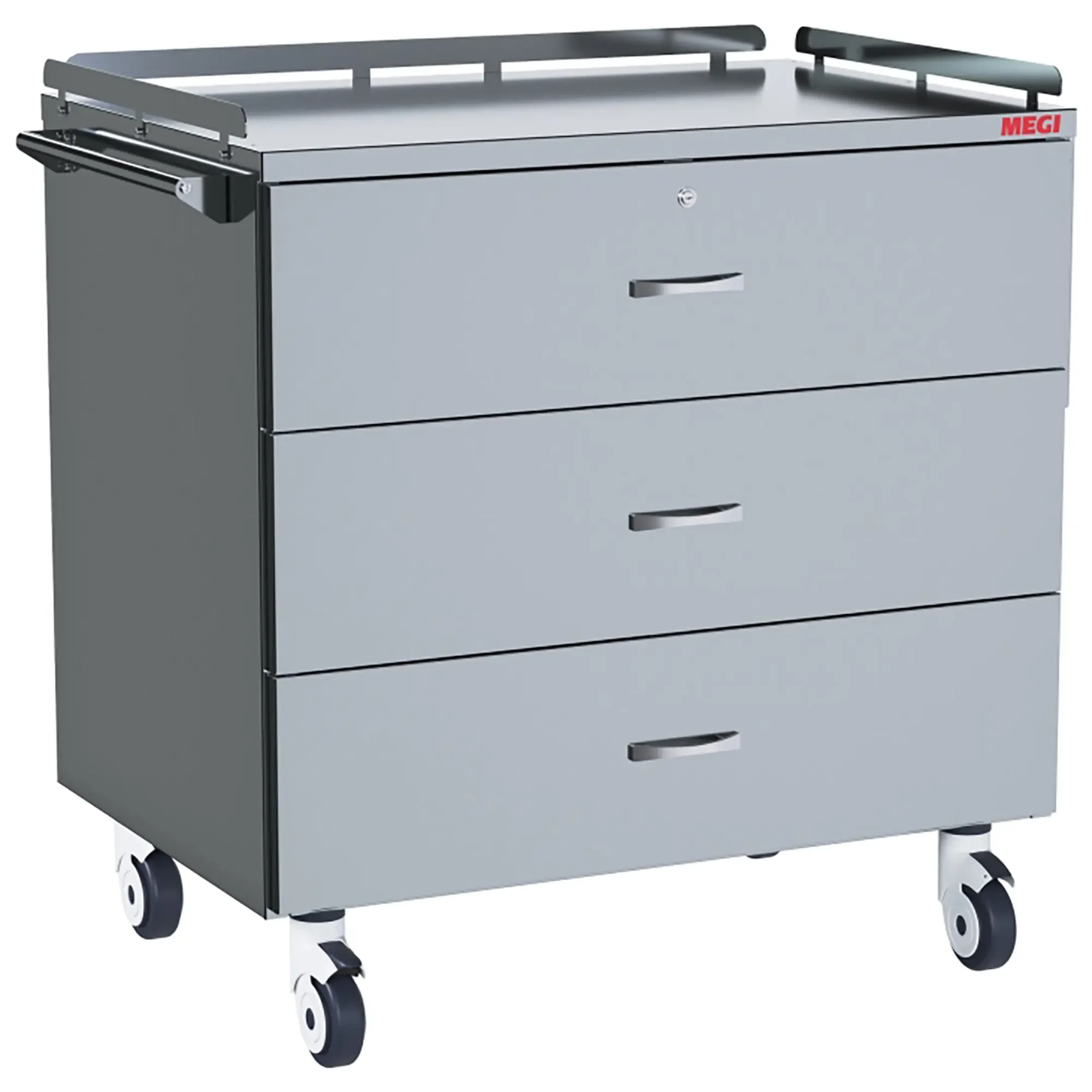 • комплектуется боковой ручкой для удобного перемещения и ограждениями по трем сторонам периметра столешницы;