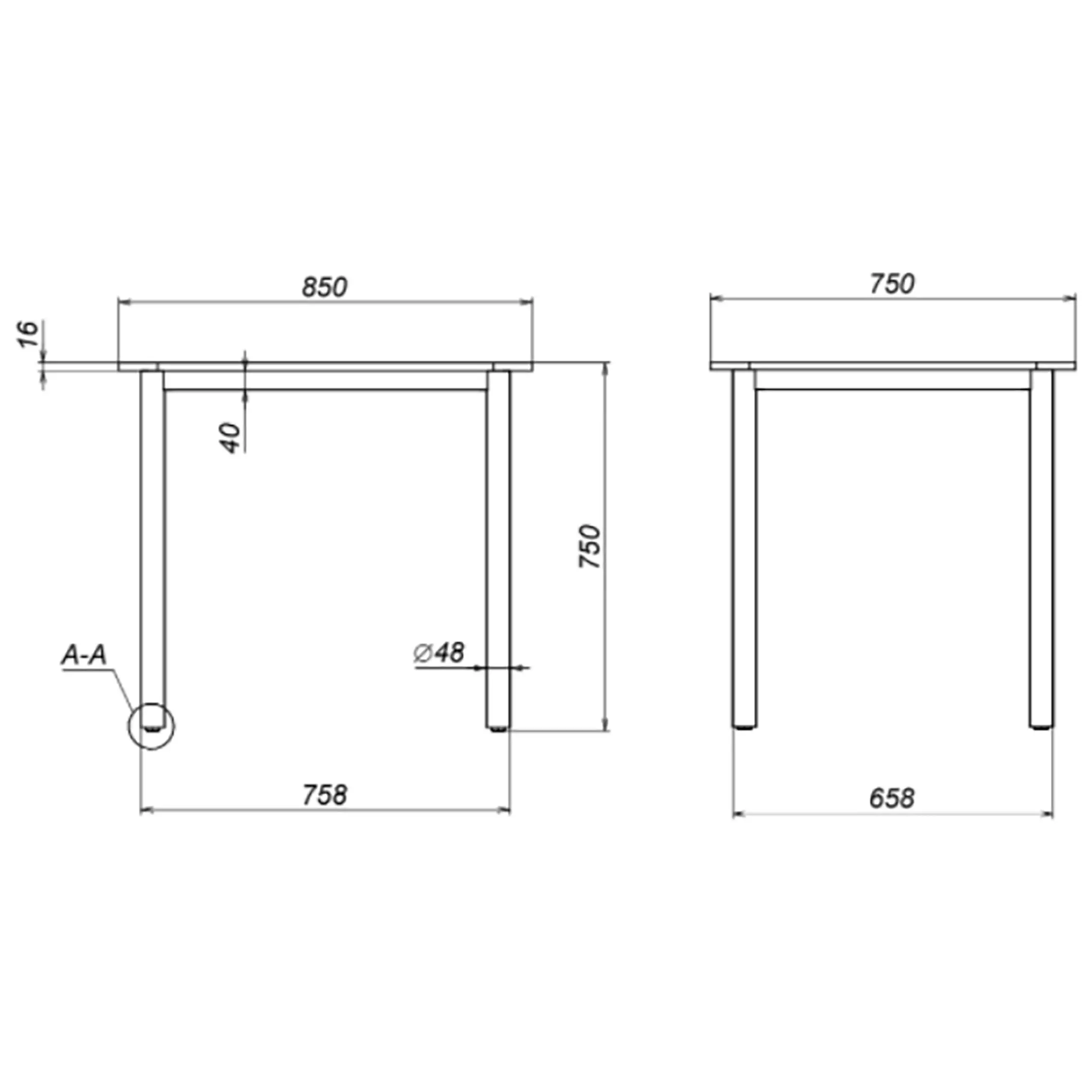 Стол изготовлен из ЛДСП панели с ножками из стальной профильной трубы с полимерным покрытием.