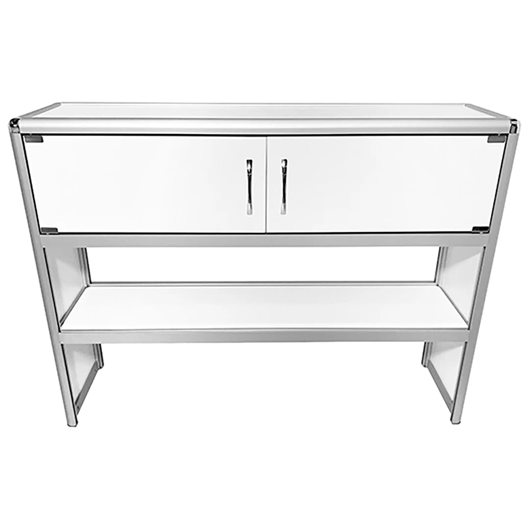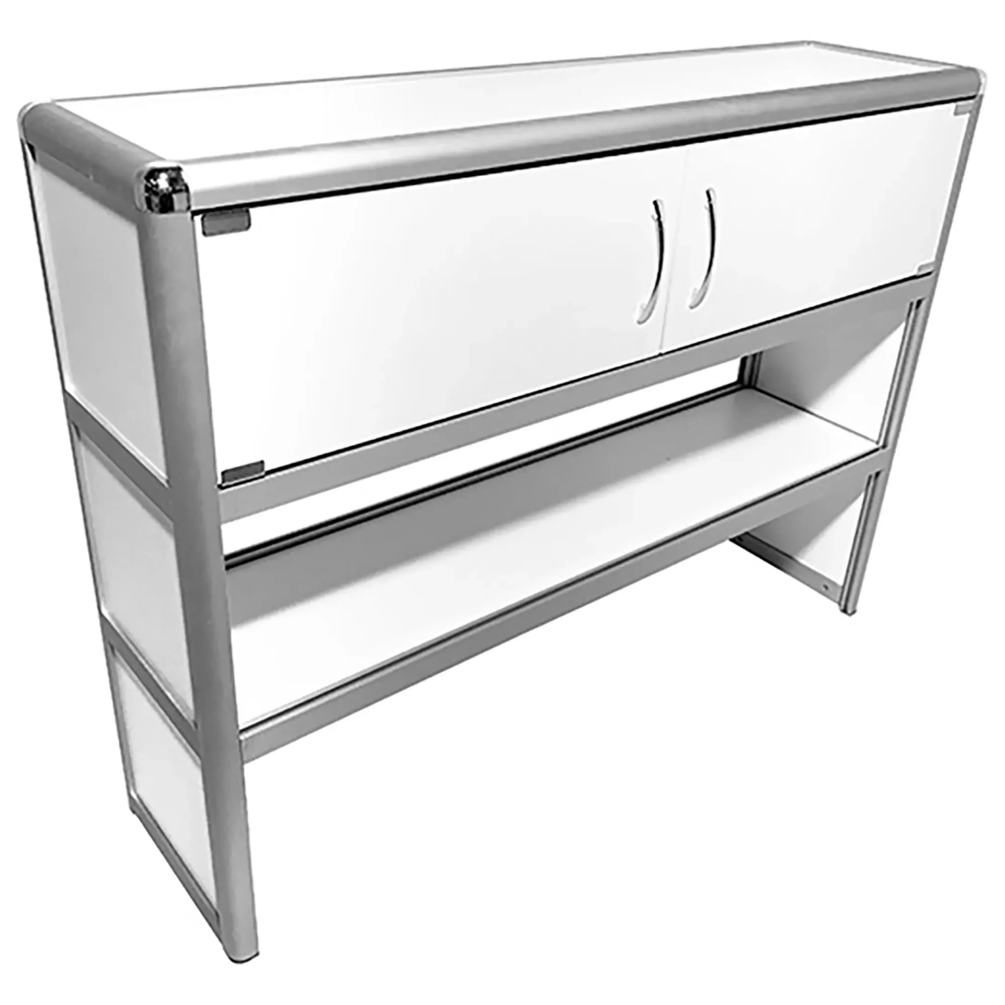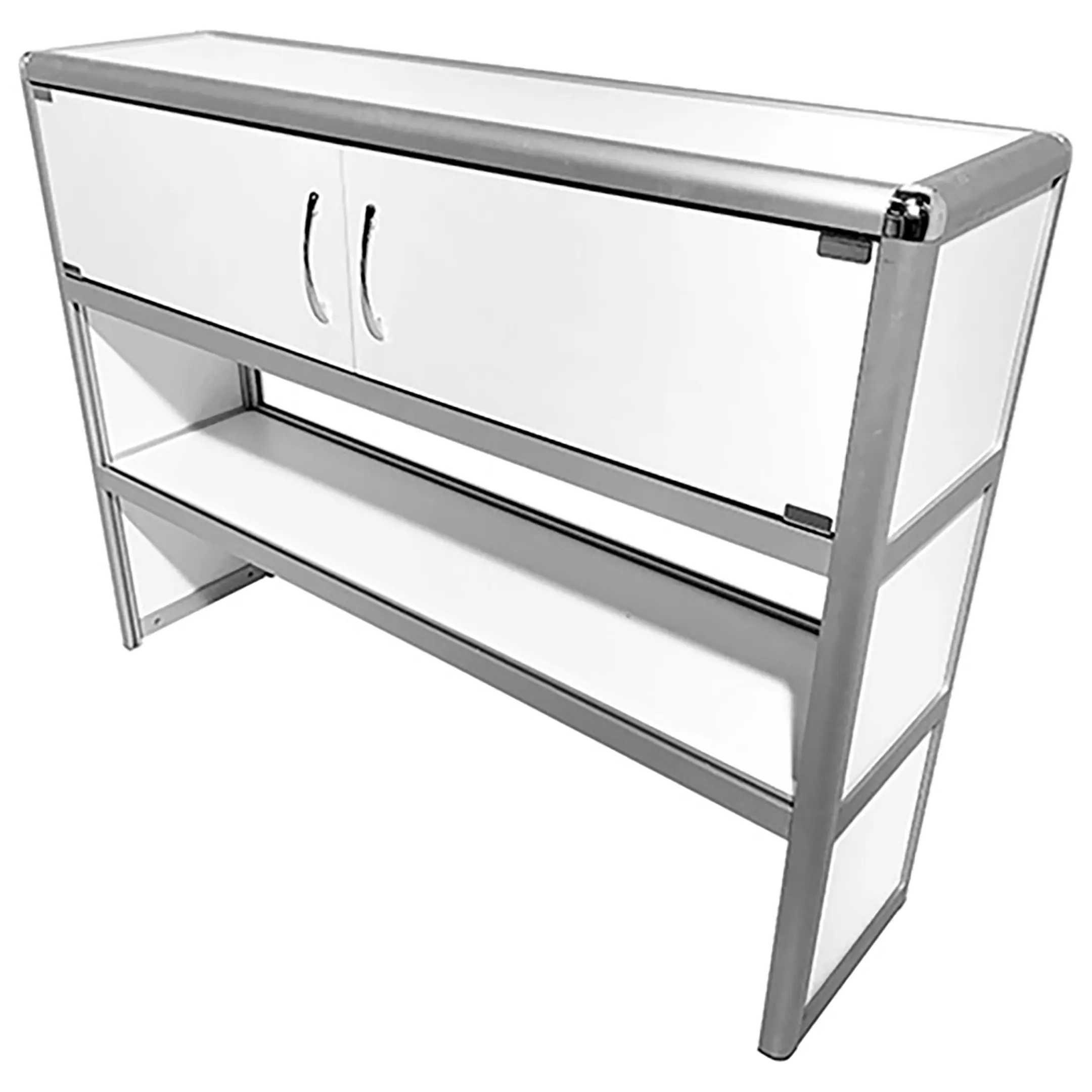 Надстройка стола лабораторного MED 15.004al (белый) — это функциональный элемент для организации рабочего пространства в лабораториях, предназначенный для установки на лабораторные столы серии MED 10al шириной 1200 мм. Модель оснащена удобной нишей с двумя распашными дверцами в верхней части и сквозной полкой снизу, что позволяет эффективно размещать лабораторное оборудование и освобождать рабочую поверхность. Каркас выполнен из алюминиевого профиля, гарантирующего легкость и прочность конструкции.