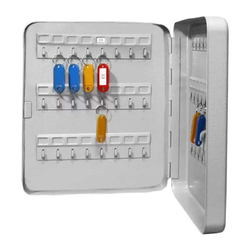 - Строгий учет и полный контроль — каждая из 48 ячеек имеет четкую маркировку (цифровую или буквенную), что позволяет вести точный журнал учета, фиксировать ответственных лиц за каждый ключ и моментально находить нужный экземпляр, исключая ошибки и потери времени.