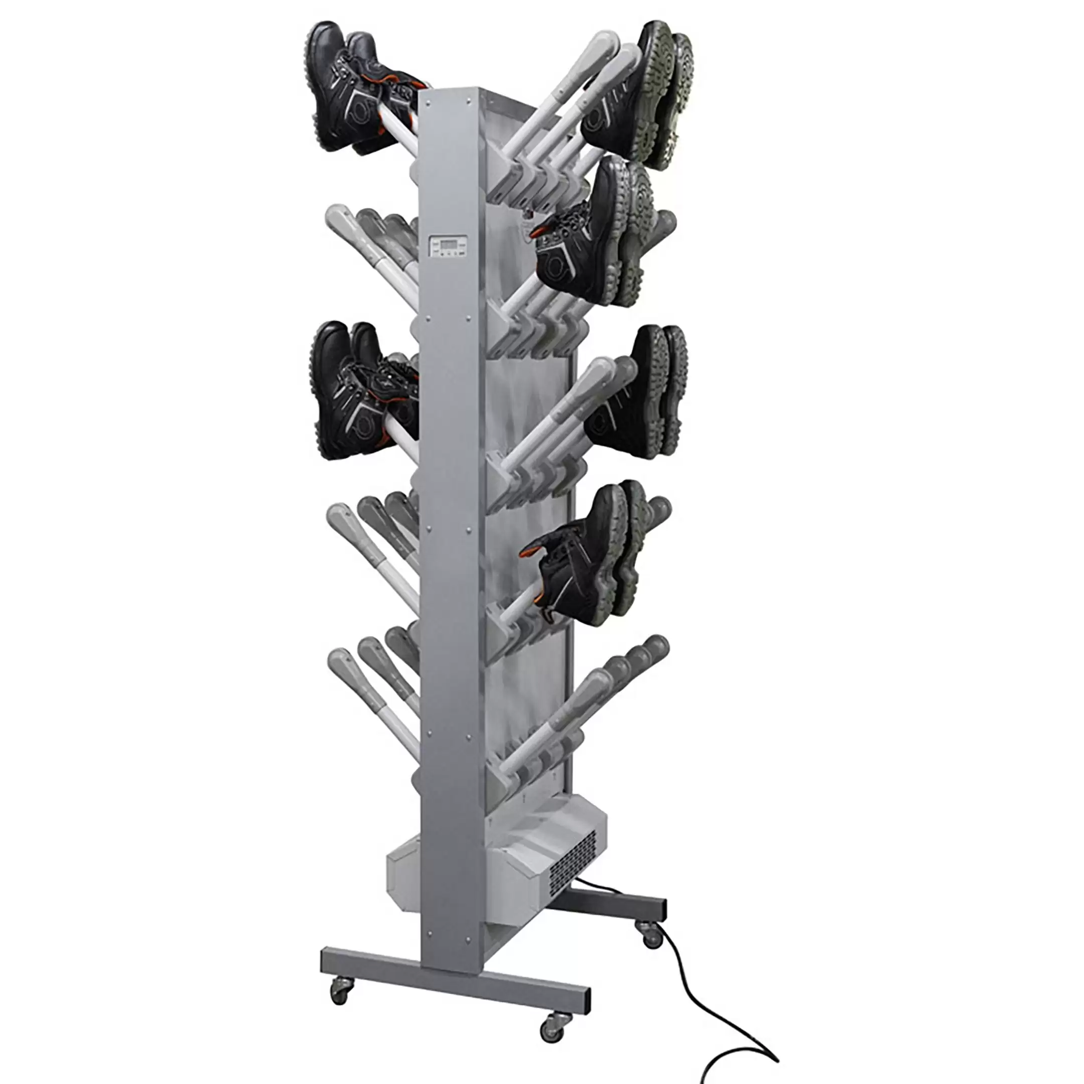 - Высокая производительность и вместимость — модуль рассчитан на одновременную сушку до 20 пар обуви, что делает его эффективным решением для средних по размеру групп и коллективов в школах, спортивных секциях или на производственных участках.