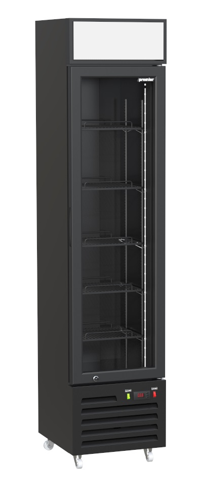 Особенности Корпус и внутренний объем: оцинкованная сталь, окрашенная порошковым напылением. Окраска в черный цвет (внутри и снаружи глянец). Термоизоляция – заливной пенополиуретан. Стеклянная дверь с энергосберегающим стеклопакетом. Вертикальный LED светильник. 6 регулируемых по высоте полок. Металлические крючки для крепления полок, выдерживающие полную нагрузку. Малошумный компрессор с низким энергопотреблением. Нижнее расположение агрегата облегчает доступ к нижней полке шкафа. Блочный медно-алюминиевый конденсатор. Динамическое охлаждение для быстрого восстановления температурного режима. Микропроцессор для поддержания заданной температуры в полезном объеме. Автоматическое выпаривание конденсата. Описание Холодильный шкаф Премьер RBD–220H - это компактный шкаф со встроенным агрегатом для магазинов с ограниченными площадями. Занимаемая площадь пола всего 0,2 м². Предназначен для замораживания, демонстрации и хранения различных продуктов и напитков на предприятиях общественного питания и торговли.