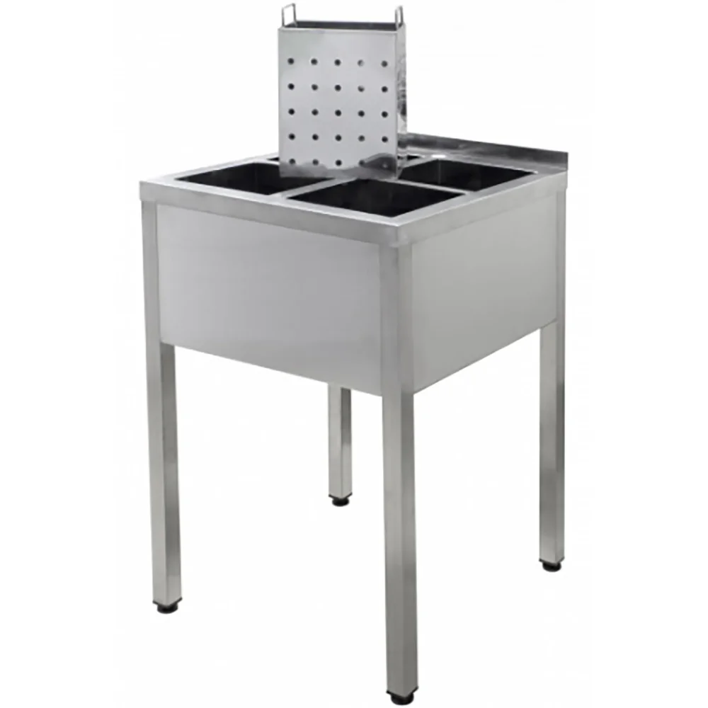 • Ванна моечная ВМОя-6/6-М, имеет 4 независимых ёмкости из нержавеющей стали марки AISI 430 толщиной 0,8мм.