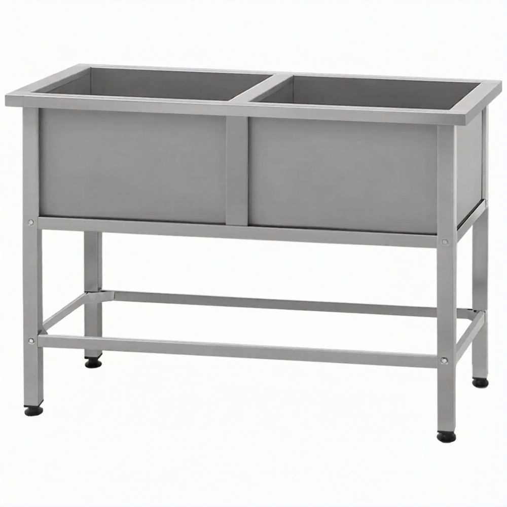 Ванна моечная ВМСн 700/2 2 м/о 600х600х350 (полка 2 отв. борт; ножка проф. тр. 40х40)
