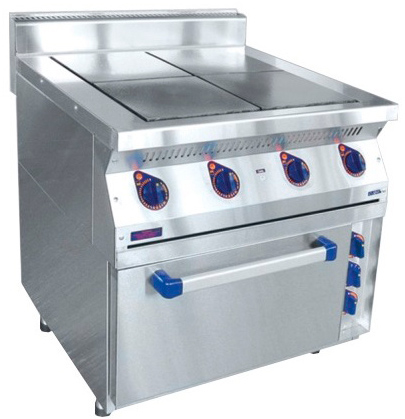 В корпус плиты встроен жарочный шкаф для противня размером 530х470 мм. Мощность нижних и верхних блоков ТЭНов шкафа регулируется отдельно. Рабочий диапазон температур составляет от 20 до 270 °C.