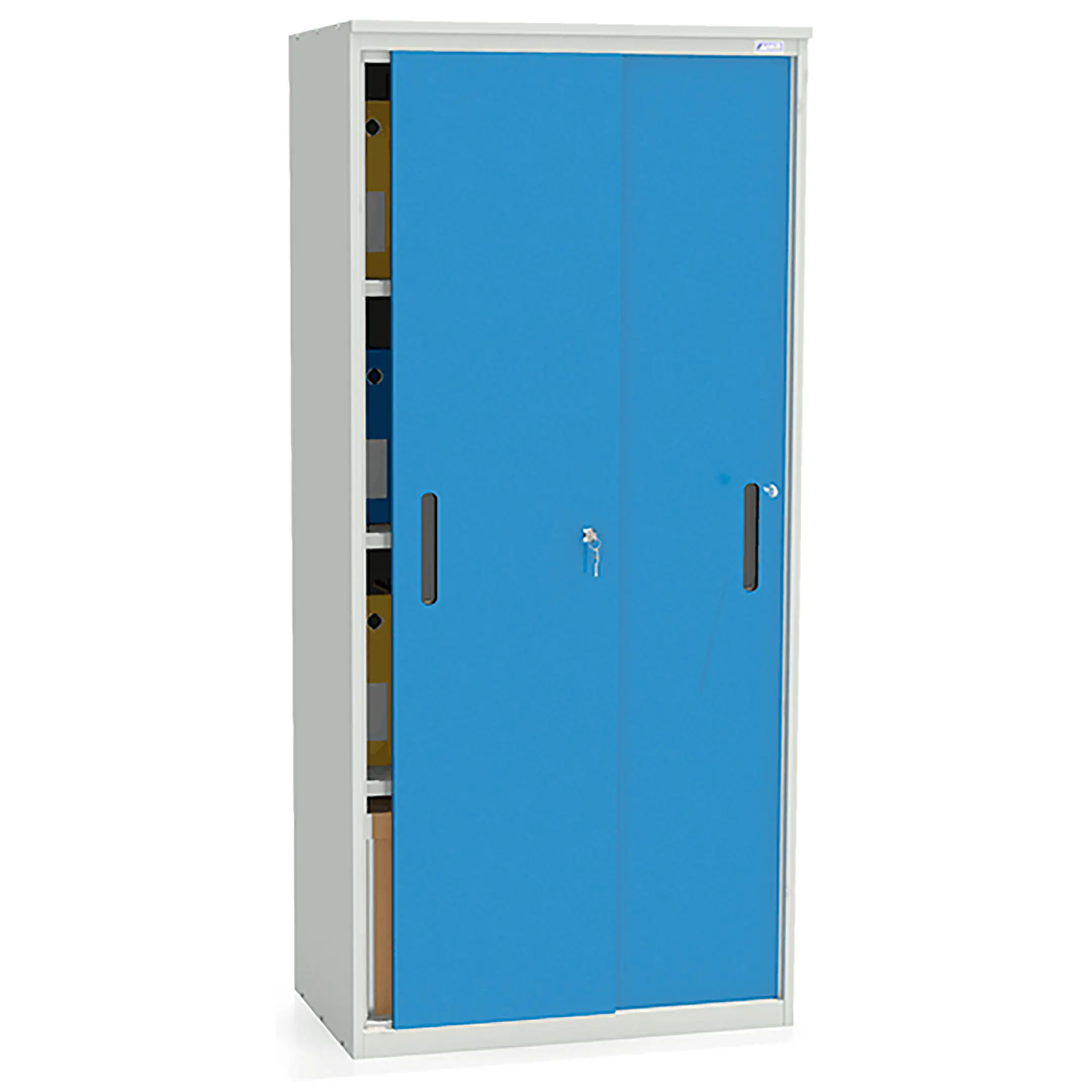- Удобный доступ и эргономичность — раздвижные двери обеспечивают полный обзор и легкий доступ ко всему содержимому шкафа без необходимости отступать назад. Это делает работу с архивом удобной и быстрой.