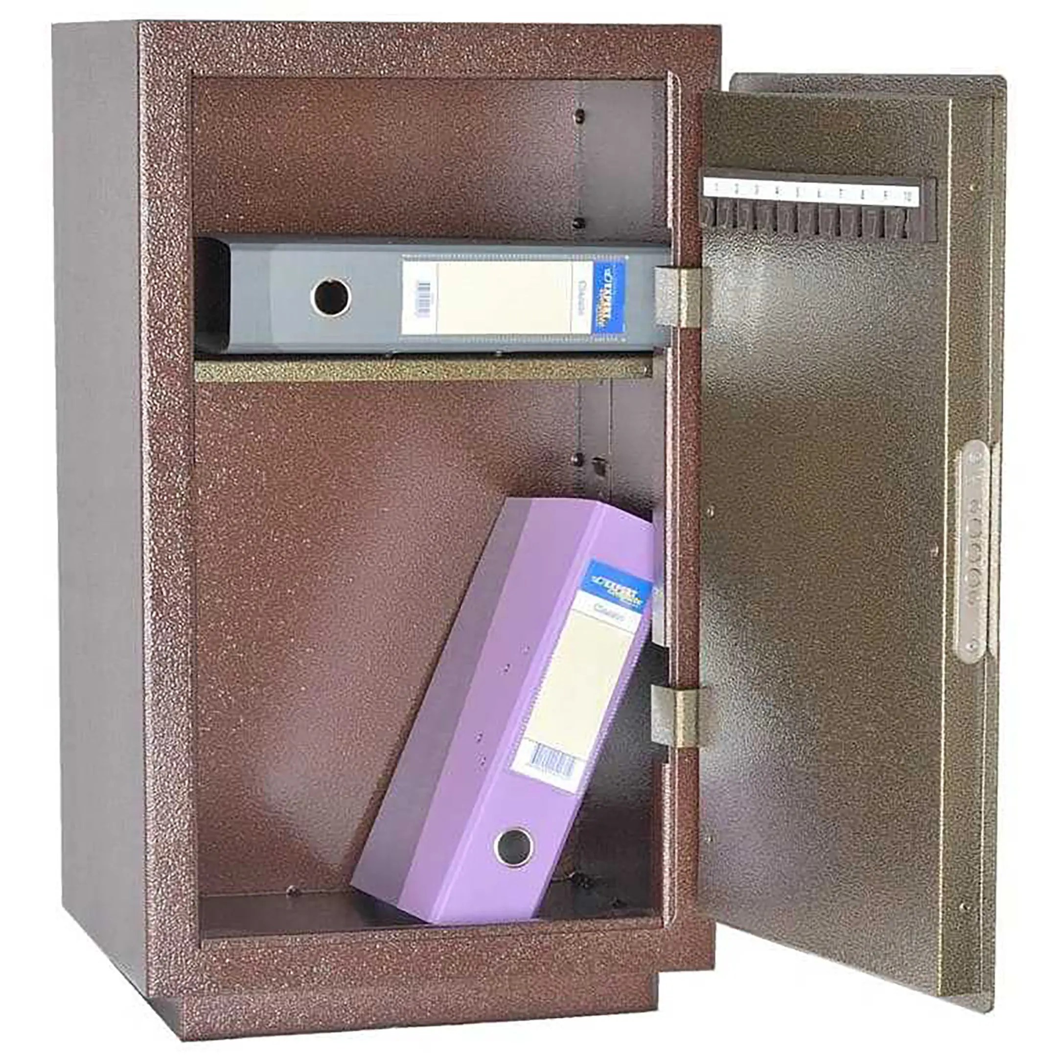 • Сейф односекционный, оснащен одной съемной полкой.