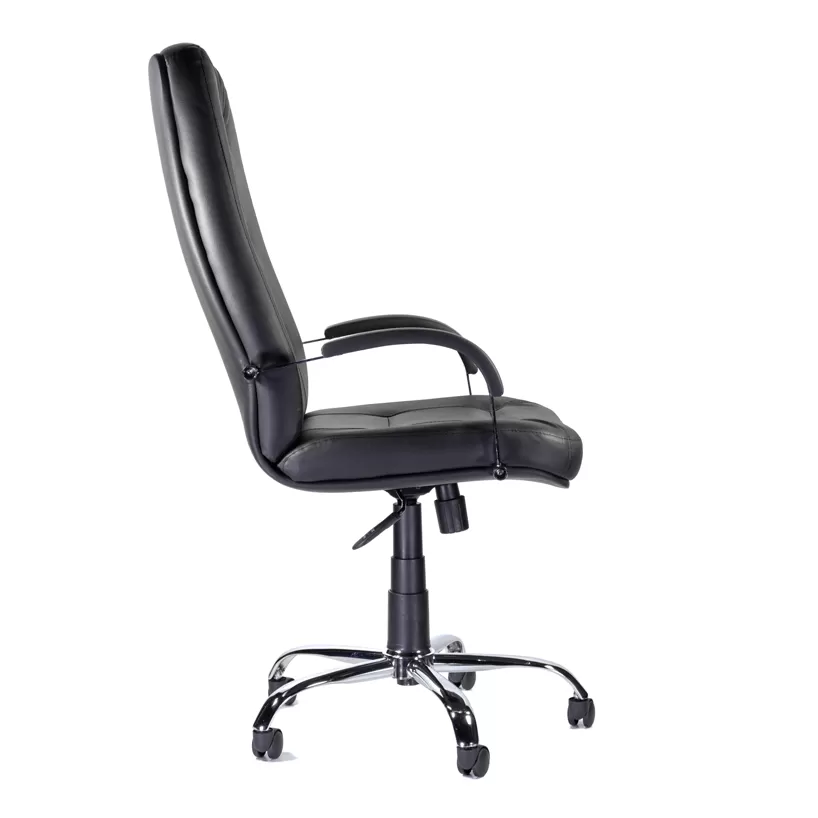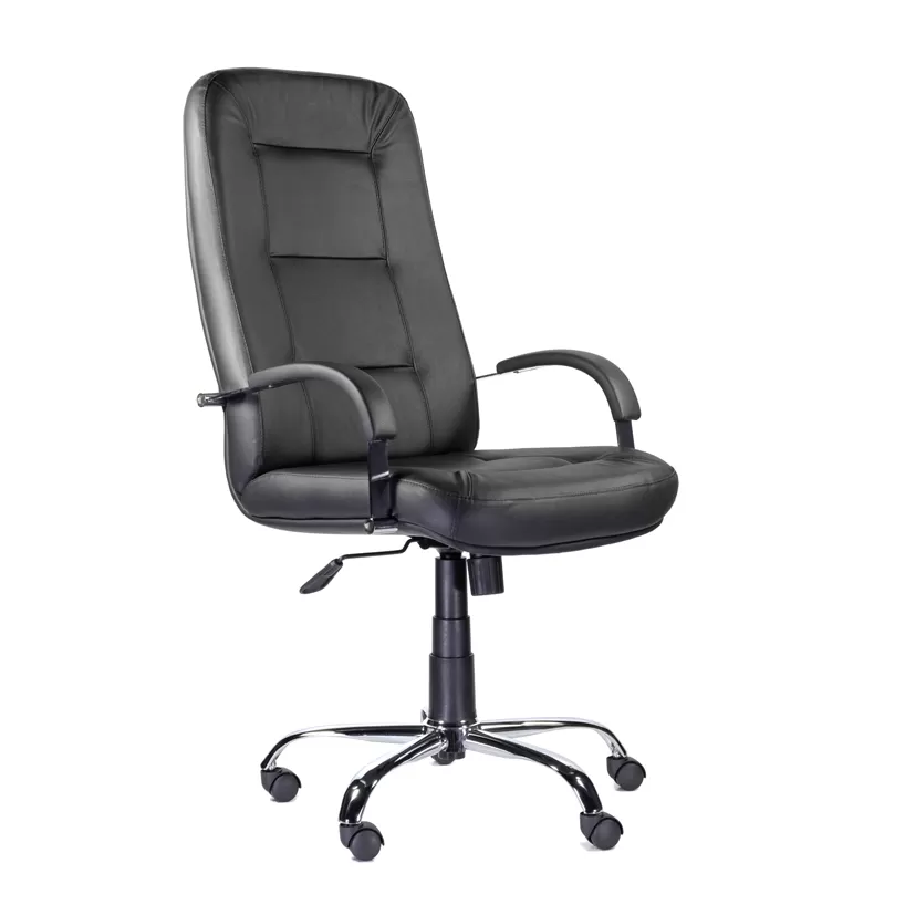 - Хромированная крестовина и ролики — устойчивое основание и плавное перемещение по офисным покрытиям.