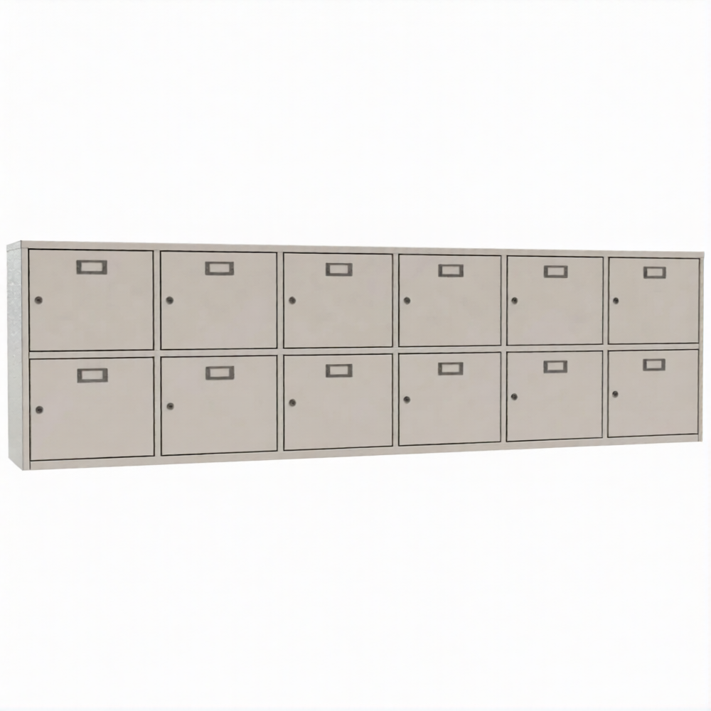 • 12 ячеек для касок. Каждая ячейка оснащена почтовым замком с двумя ключами в комплекте.