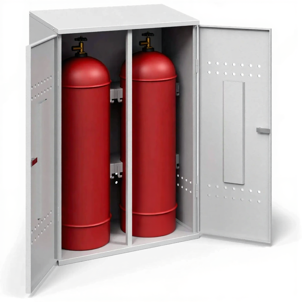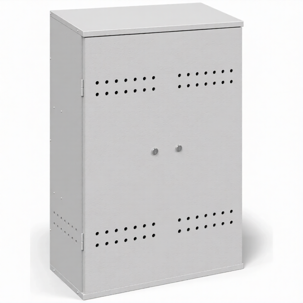 - Соблюдение базовых требований пожарной безопасности — шкаф оснащен всеми необходимыми элементами для безопасного хранения: запирающейся дверцей с замком и вентиляционными отверстиями (перфорацией) в нижней и верхней части корпуса. Это обеспечивает отвод газа в случае утечки и предотвращает образование взрывоопасной концентрации внутри шкафа.