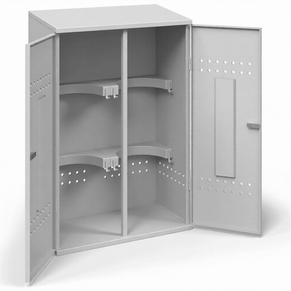 Шкаф для пропановых баллонов разборный ШПБР-02-0,8 мм — это экономичное и практичное решение для безопасного хранения двух стандартных пропановых баллонов объемом до 50 литров, сочетающее в себе удобство транспортировки, простоту сборки и базовые функции безопасности. Модель представляет собой металлический шкаф, где аббревиатура «ШПБР» расшифровывается как «Шкаф для Пропановых Баллонов Разборный», индекс «02» указывает на вместимость для двух баллонов, а «0,8 мм» обозначает толщину используемой стали. Разборная конструкция на болтовых соединениях специально разработана для легкой доставки и монтажа на месте без использования сварки, что делает её идеальным выбором для временных объектов, дач и мест с ограниченным бюджетом.