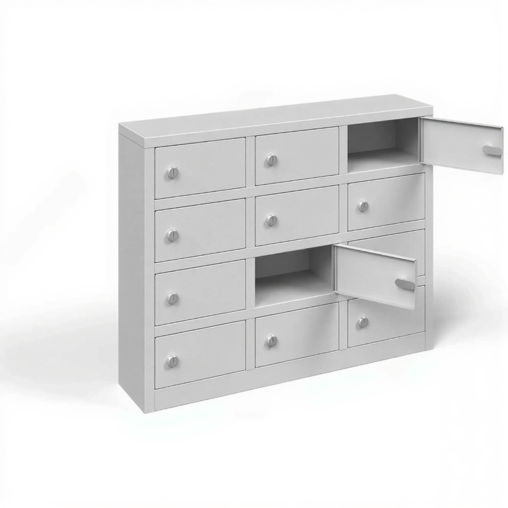 - Компактные размеры и базовая вместимость — шкаф предоставляет 12 индивидуальных запирающихся ячеек, что оптимально для малых коллективов, таких как группа продленного дня, отдел из нескольких сотрудников или спортивная секция. Его небольшие габариты позволяют легко разместить оборудование на столе, полке или тумбе, не занимая много места.