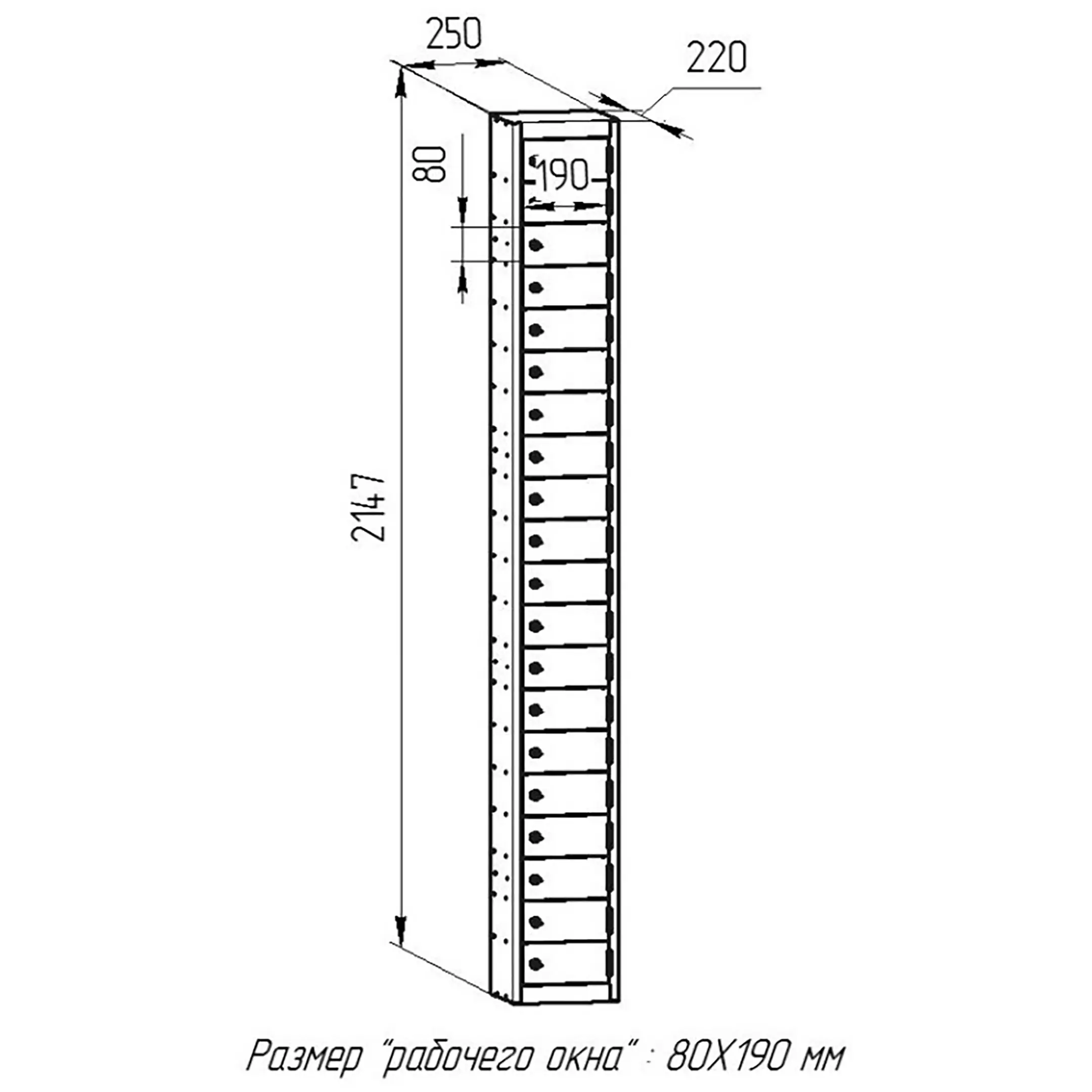 - Надежная защита и компактные габариты — несмотря на небольшой размер, модель обеспечивает высокий уровень безопасности за счет прочного металлического корпуса и персональных замков на каждую ячейку. Его легко разместить на столе, тумбе или специальной стойке, не занимая полезную площадь помещения.