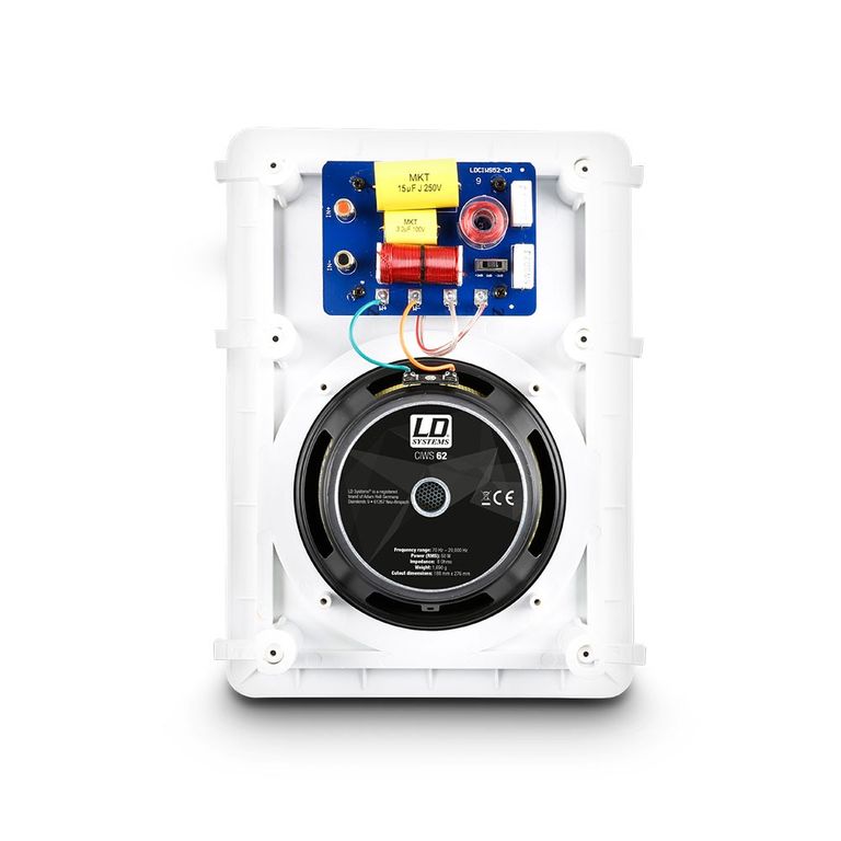 Инсталляционная акустическая система LD Systems Contractor CIWS 62 – двухполосная акустическая система прямоугольной формы предназначена для монтажа в стены помещения, обеспечивает качественный звук и элегантный, минималистичный внешний вид. Система оснащена низкочастотным 6,5-дюймовым и высокочастотным 1,42-дюймовым излучателями с частотным диапазоном до 20 кГц, чувствительностью - 88 дБ при 1 Вт/1 м, а продолжительной мощностью – 60 Вт. CIWS 62 имеет безопасную систему крепления для легкой и быстрой сборки. Встраиваемая акустическая система предназначена для широкого спектра применения в системах фонового звука в отелях, ресторанах, барах, салонах, торговых центрах, учебных и конференц-залах.